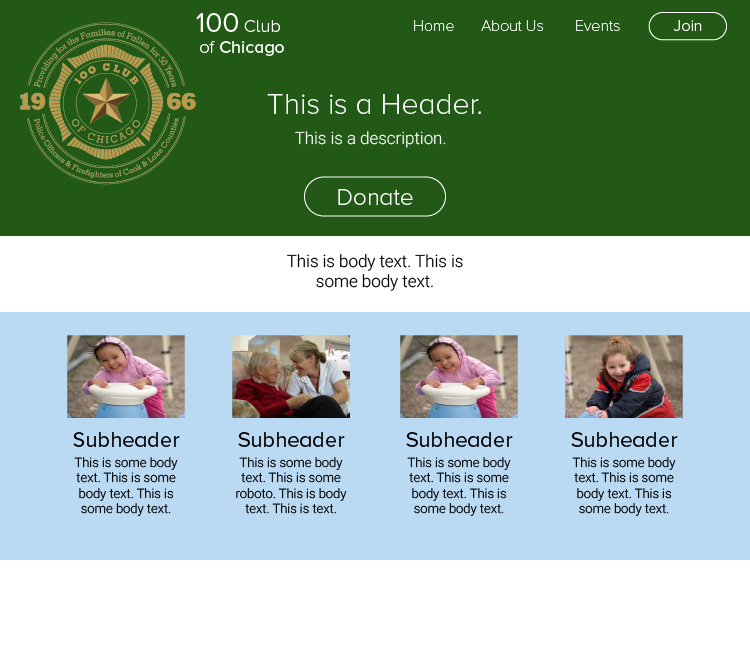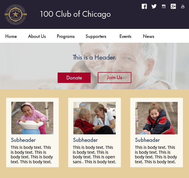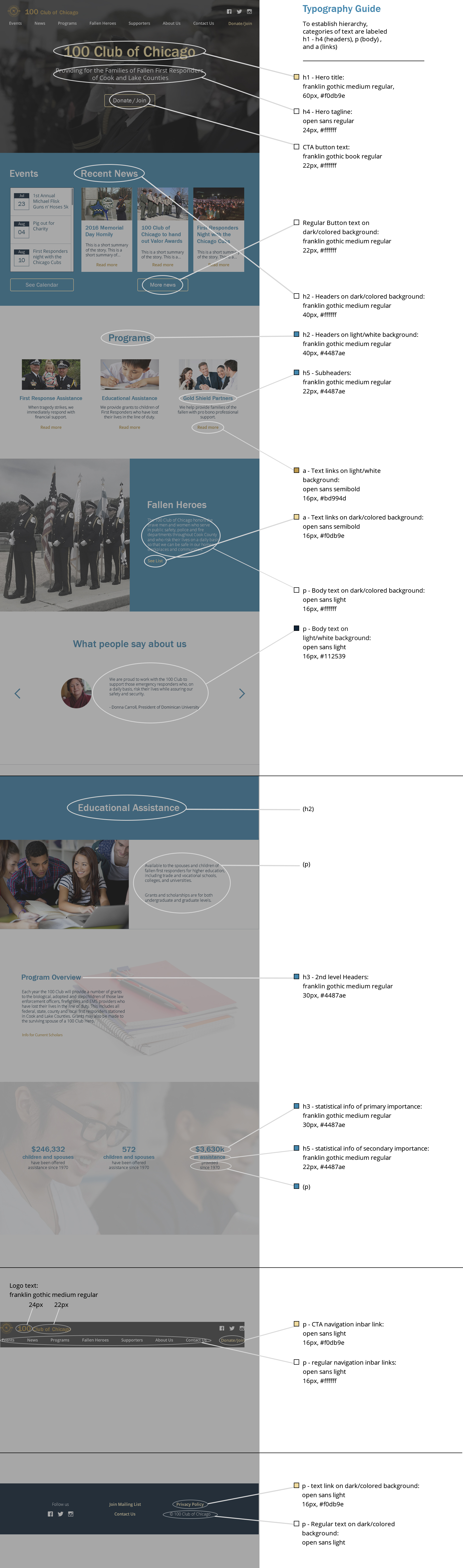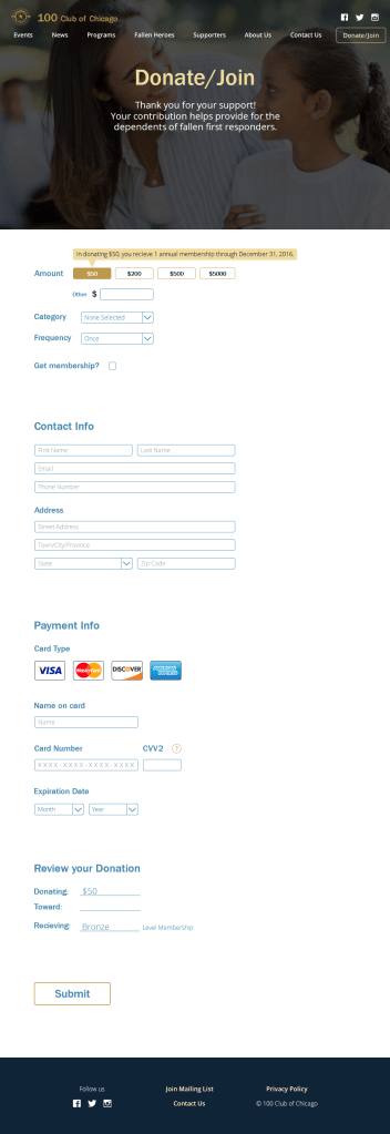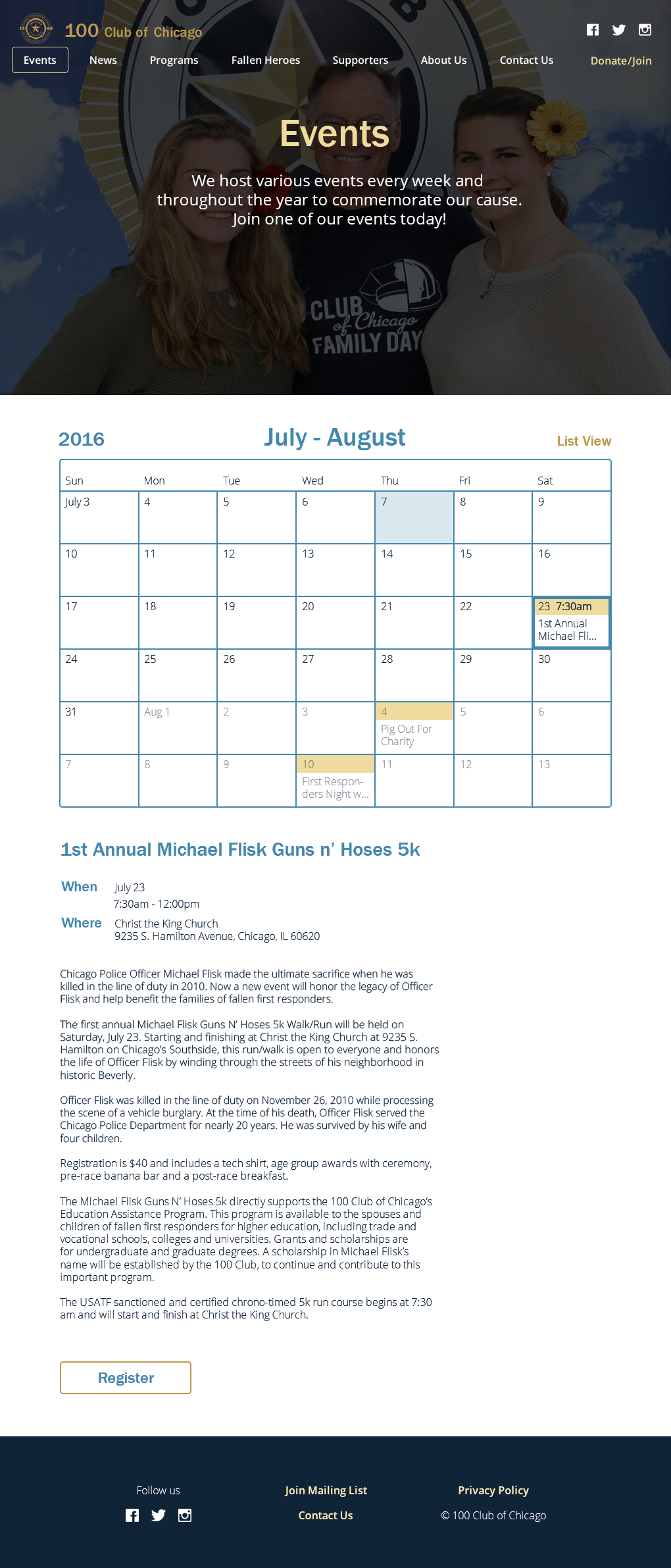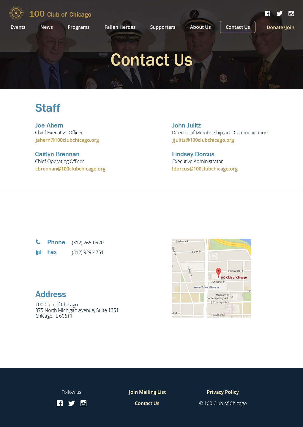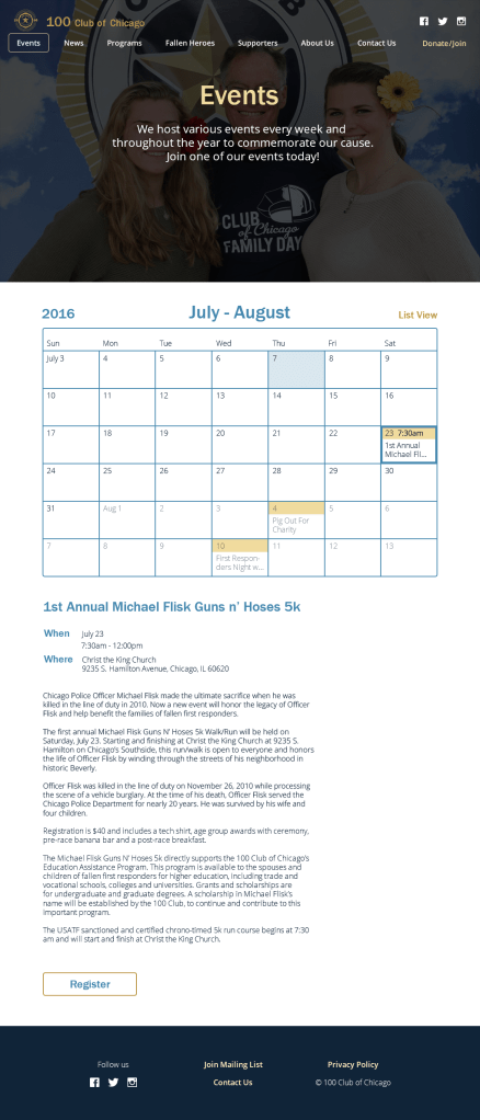 100 Club of Chicago provides financial and emotional support to the families of first responders (such as policemen and firefighters) who lost their lives in the line of duty. To honor these heroes and their history, the club holds events and gathers support through donations and other organizations’ contributions. Marking their 50th anniversary, they sought to refresh their web presence by updating their website.