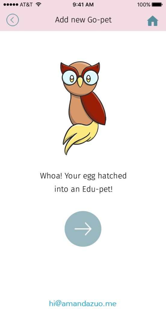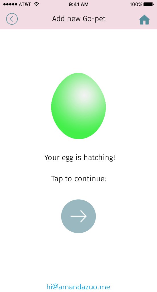 In a prototype, the hatching of the egg would be an animation to further engage the user.