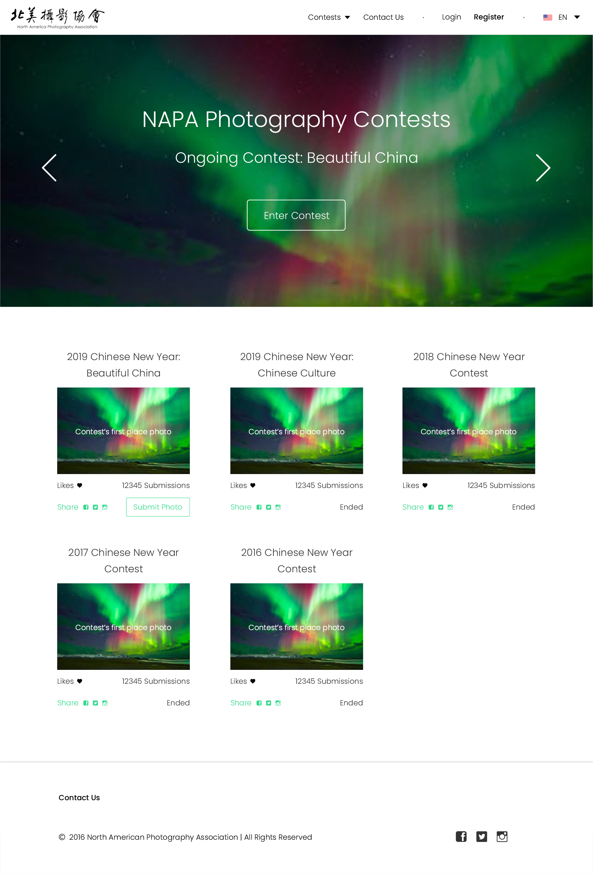 The North American photography Association (NAPA) is a Chinese organization that hosts photography contests with themes of various aspects of Chinese culture, such as the themes “Chinese Culture,” “Chinese New Year,” and “The Country China.” They sought to create an English version of their Chinese website that was easier to use and navigate.